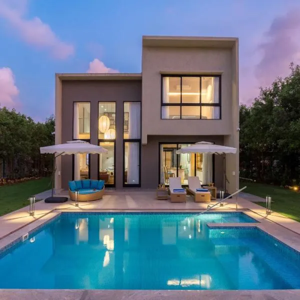 StayVista at Azure Bliss with Huge Pool, BBQ, Wi-Fi se může pochlubit výhledem do zahrady a nabízí ubytování s venkovním bazénem a balkonem. Pláž Nagaon Beach se nachází přibližně 2,6 km odtud.