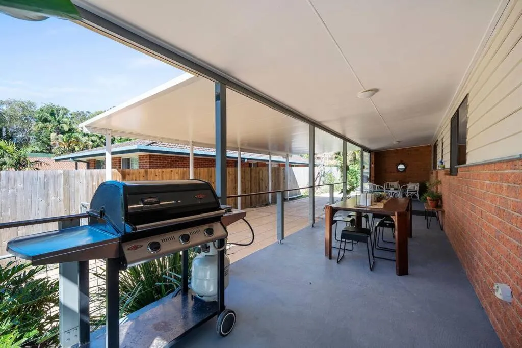 Located in Coffs Harbour, Diggers Beach Cottage features large timber french doors that open out into a private garden with barbecue.