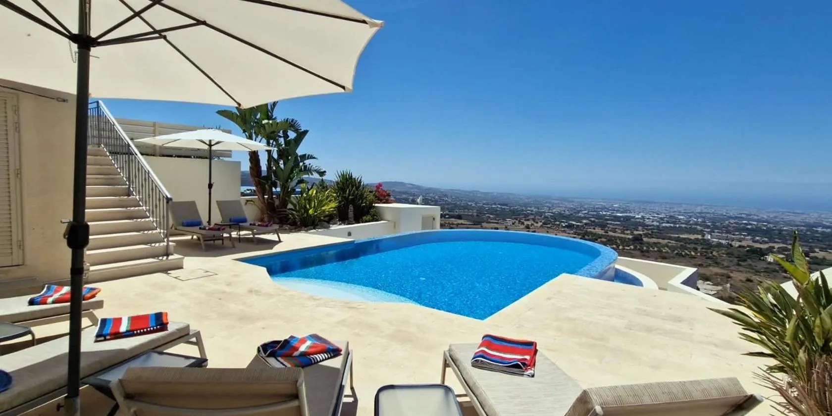 Die Unterkunft Resitour - Perneri Three Bedroom Villas, die über einen Außenpool, einen Garten und eine Terrasse verfügt, bietet Übernachtungsmöglichkeiten in Tala mit kostenlosem WLAN und Meerblick.