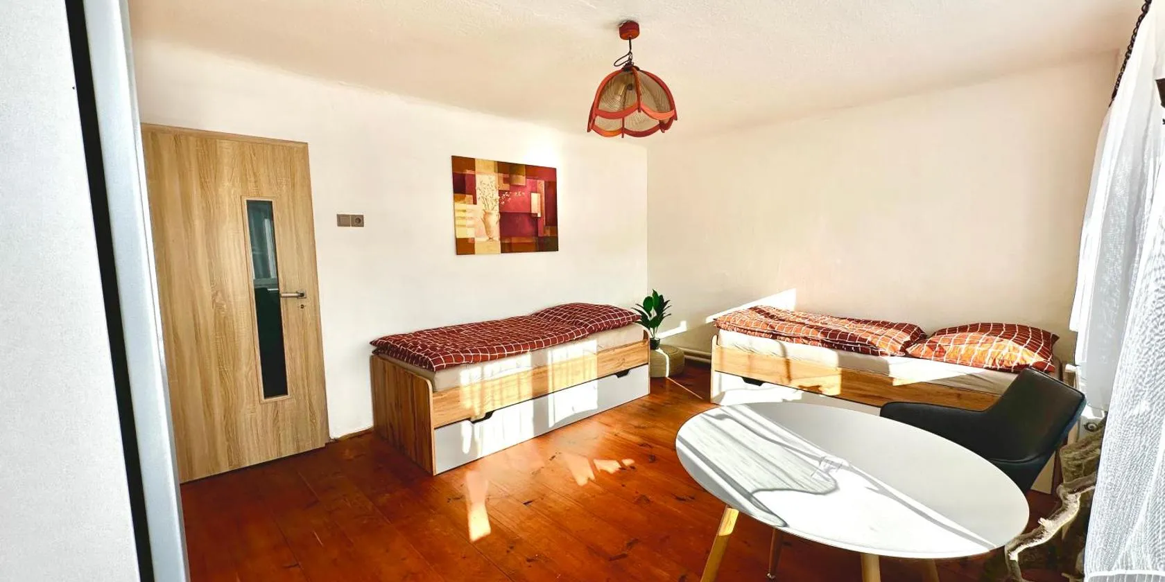 Apartmán DOMLEJNA ligger i Český Rudolec med udsigt til en have. Her er en sæsonåben udendørs swimmingpool, en have og en terrasse. Der er også gratis wi-fi.