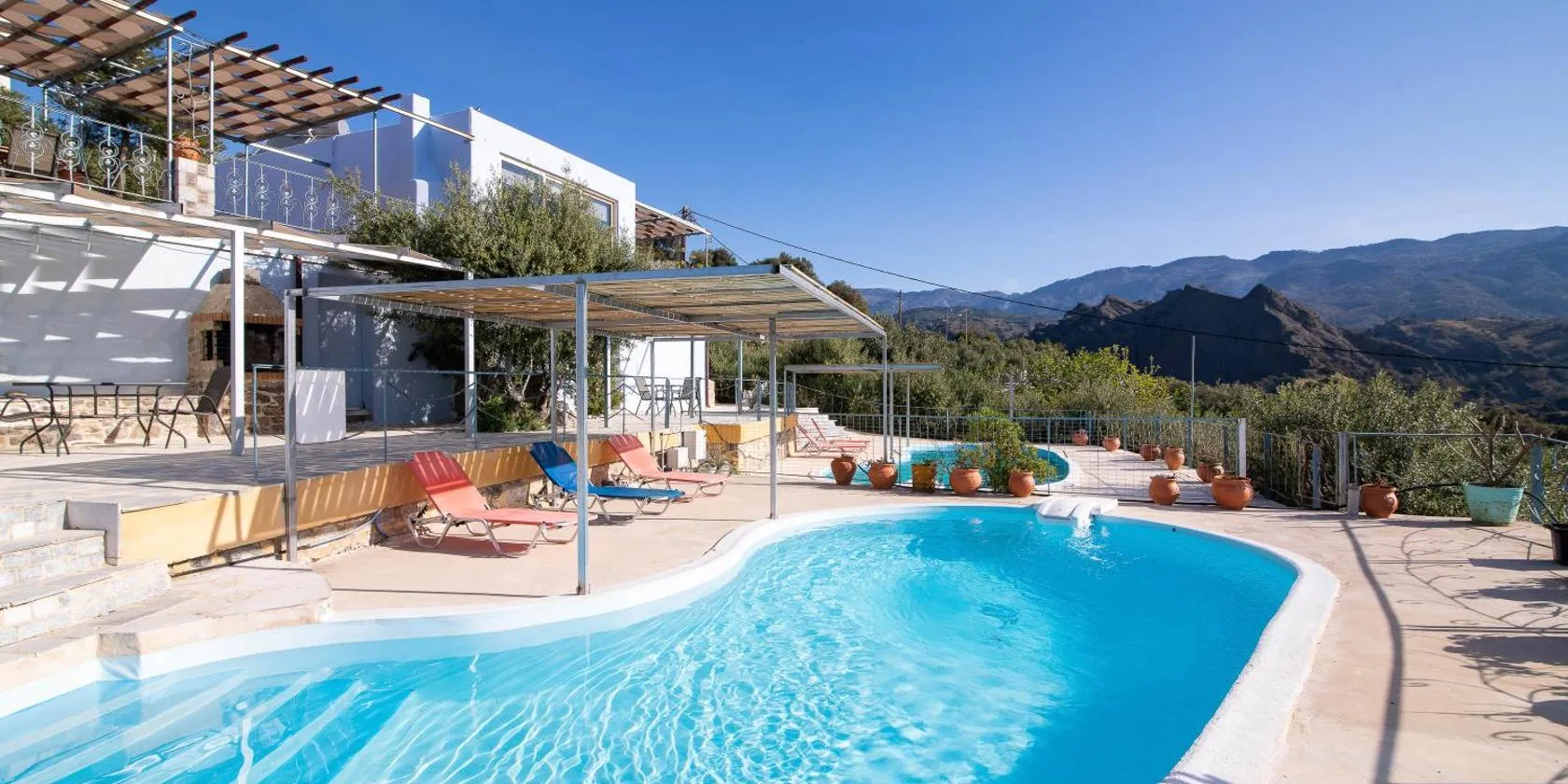 Die Unterkunft Villa Mertiza mit Bergblick in Myrtos bietet Übernachtungsmöglichkeiten mit einem Garten, einer Gemeinschaftslounge und einer Terrasse. Die Unterkunft hat einen Whirlpool.
