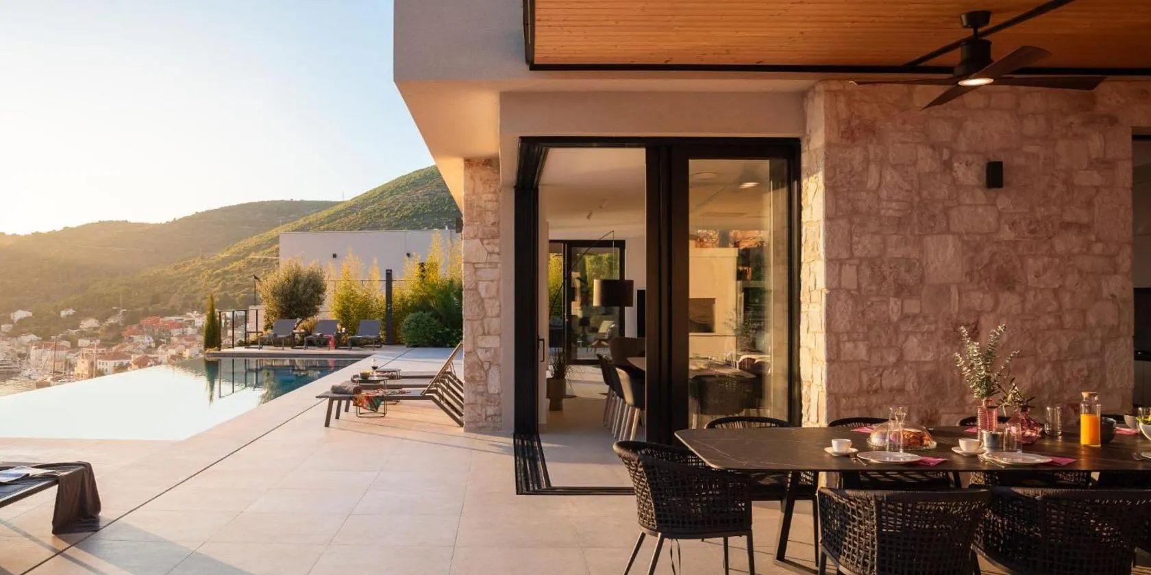 The Pool House Vis 位在維斯,享有海景,設有住宿、私人游泳池和戶外休息區。住宿享有市景,設有季節性室外游泳池、露台以及全館 WiFi(免費)。 這間空調 Villa 有 1 間臥室、起居室,廚房設備齊全且附冰箱和咖啡機,以及 1 間附淋浴設施和吹風機的衛浴。這間 Villa 提供毛巾和寢具。 The Pool House Vis 提供腳踏車租借服務和租車服務。