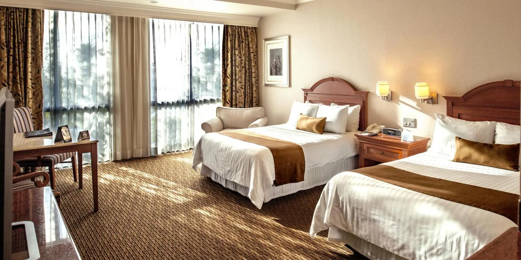 This Mexicali hotel includes 2 outdoor pools, satellite TV in the guest rooms and a modern gym. Each room at Hotel Lucerna Mexicali includes flat-screen TVs.