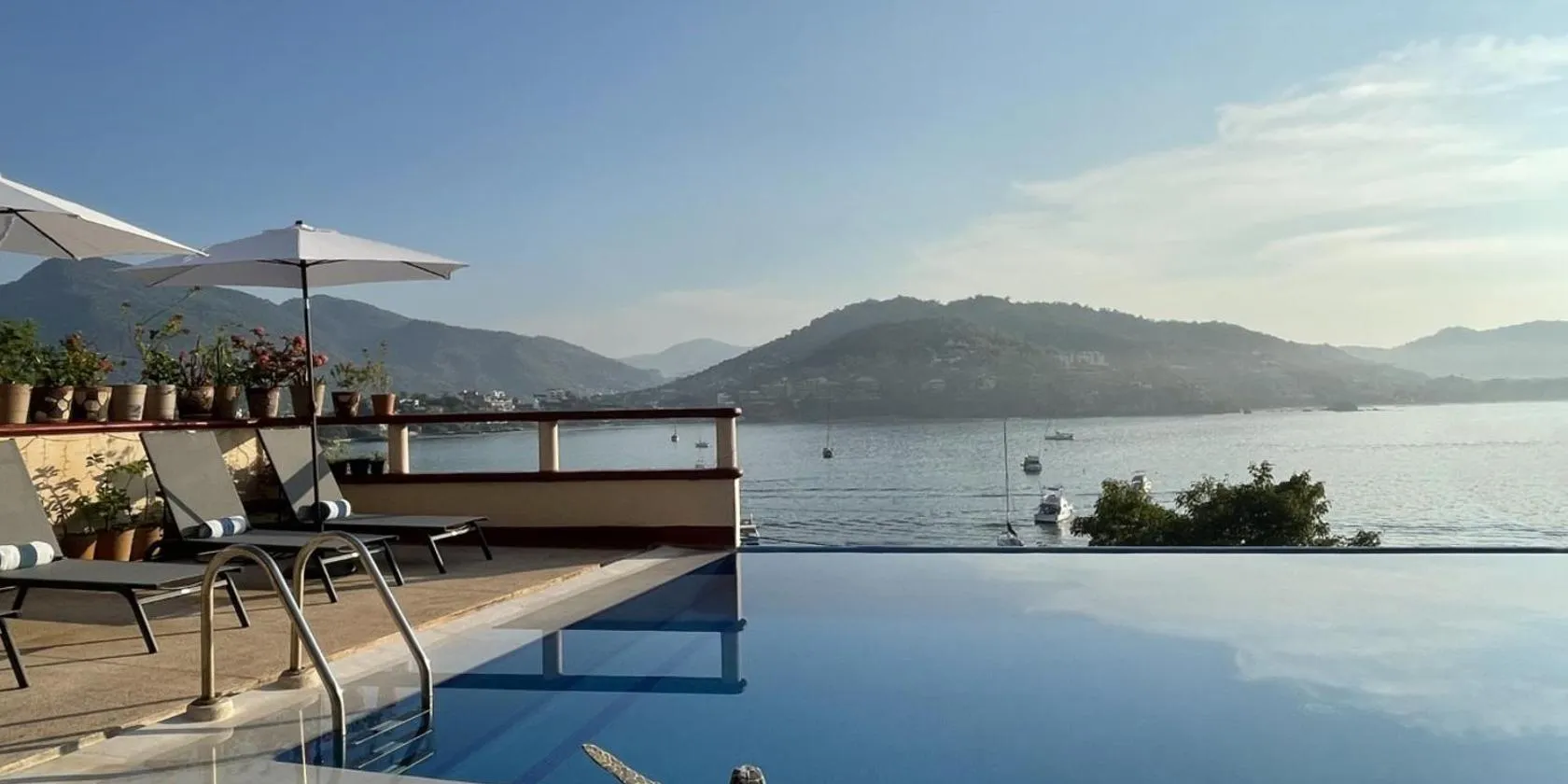 This Zihuatanejo hotel is located on the Madera Beach with private beach access. Guests can swim in the private pool or the ocean, each suite provides ocean views.