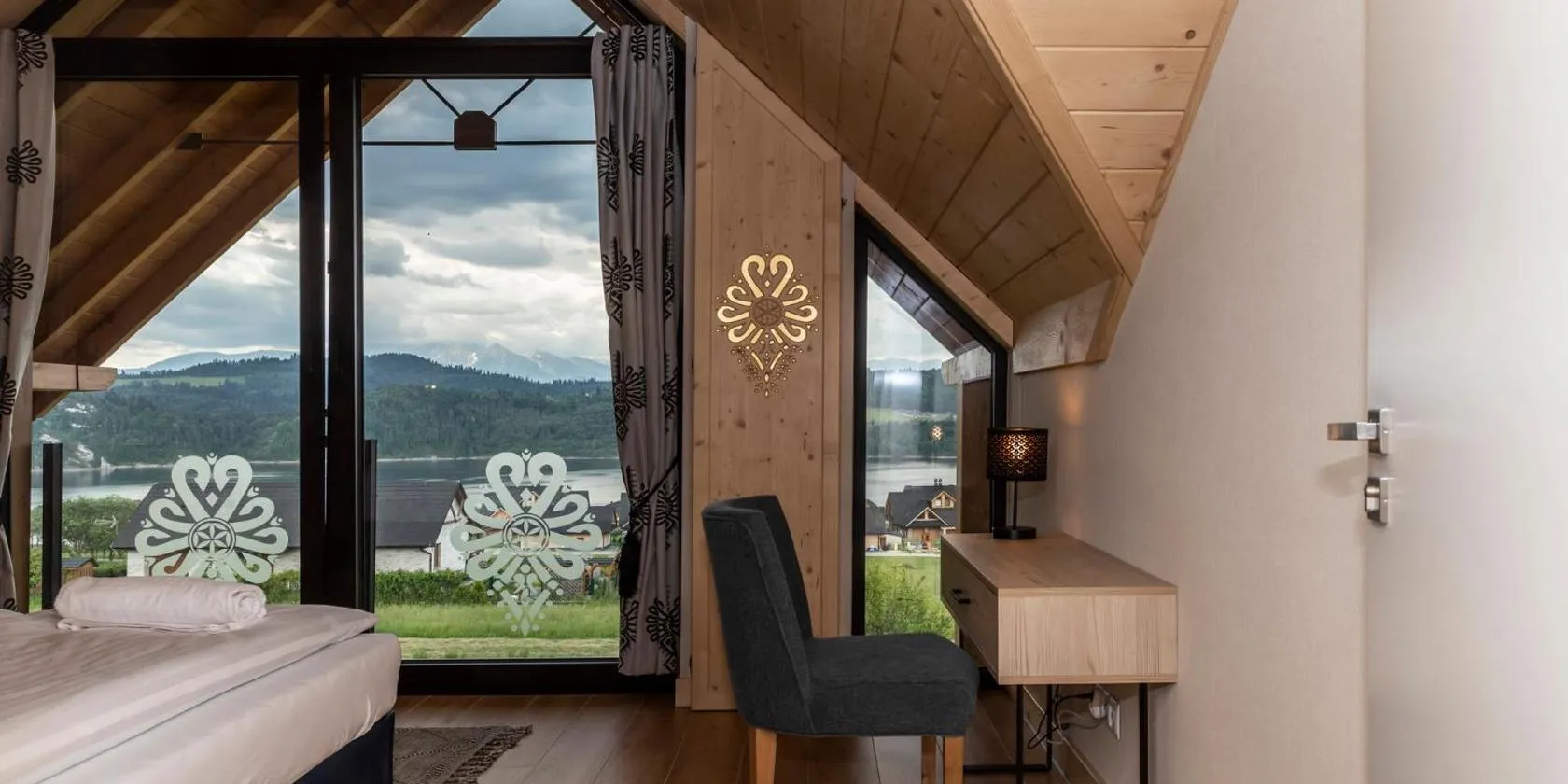 Die Unterkunft Apartament Lake View z sauną i widokiem na jezioro besticht durch Bergblick und Übernachtungsmöglichkeiten mit einem Balkon und einem Wasserkocher, ungefähr 27 km von Therme Bania...