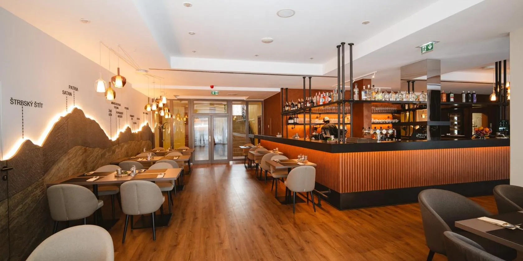 The modern Panorama Resort hotel is located directly at Štrbské Pleso. A wellness area with Finnish, steam, and infrared saunas can be found on the ground floor just behind the reception.