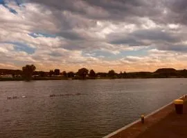 モンドルフ・レ・バンにあるRoom in a nice and cosy place in Mondorfはティオンヴィル駅から23km以内、ルクセンブルグ駅から27km以内で、無料WiFi付きのユニット、エアコン、共用ラウンジ、テラスを提供しています。川の景色を望む宿泊施設で、バルコニーを提供しています。...
