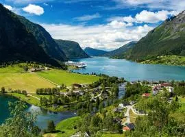 Skjolden Resort ligger i Skjolden och erbjuder boende med utsikt över bergen, gratis WiFi och gratis privat parkering, 30 km från Urnes stavkyrka.