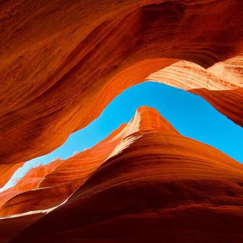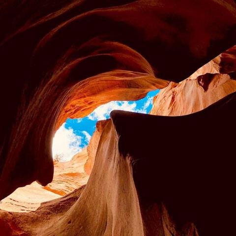 Peek-A-Boo Slot Canyon je klidné, zvláštní místo mimo vyšlapané cesty kousek od krásného Kanabu. Tichý klid nádherných barevných pískovcových skal Navajo, které vznikaly miliony let, vám vyrazí dech a zanechá ve vás touhu po více.