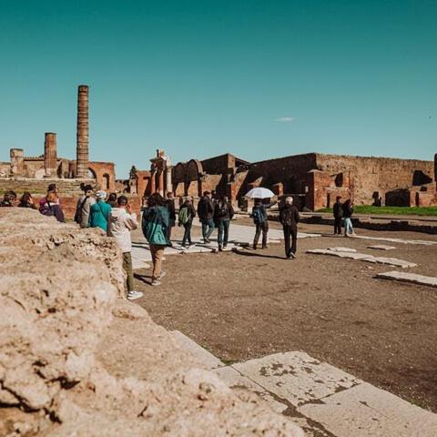During this experience travelers will see some of the most important things of Pompeii Ruins such as Amphiteatre, thermopolium, some temples and a lot of famous Roman houses (Casa del Fauno). This tour with an audio guide in language lasts 2 hours and it's with a detailed map. This experience is completed by the visit to the volcano that destroyed this famous site in 79 A.D: the Vesuvius tour. Once you get to the top (1000 metres of hight by our bus), gaze at the crater, its fumaroles and the unique panorama of the whole region with Capri, Ischia, Procida, Naples and Pompeii from above. The Vesuvius Tour lasts 3 hours (in total): 1 hour and half is free time to reach the Crater and visit the top.