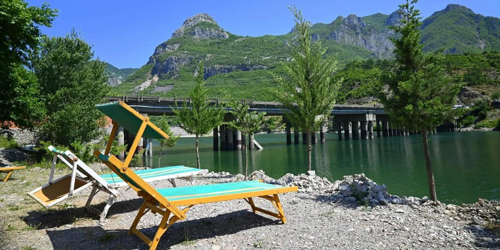 Die Unterkunft Park Blini Shala River bietet einen Garten, einen eigenen Strandbereich, eine Terrasse und ein Restaurant in Mollʼ e Shoshit.