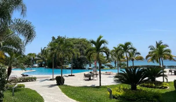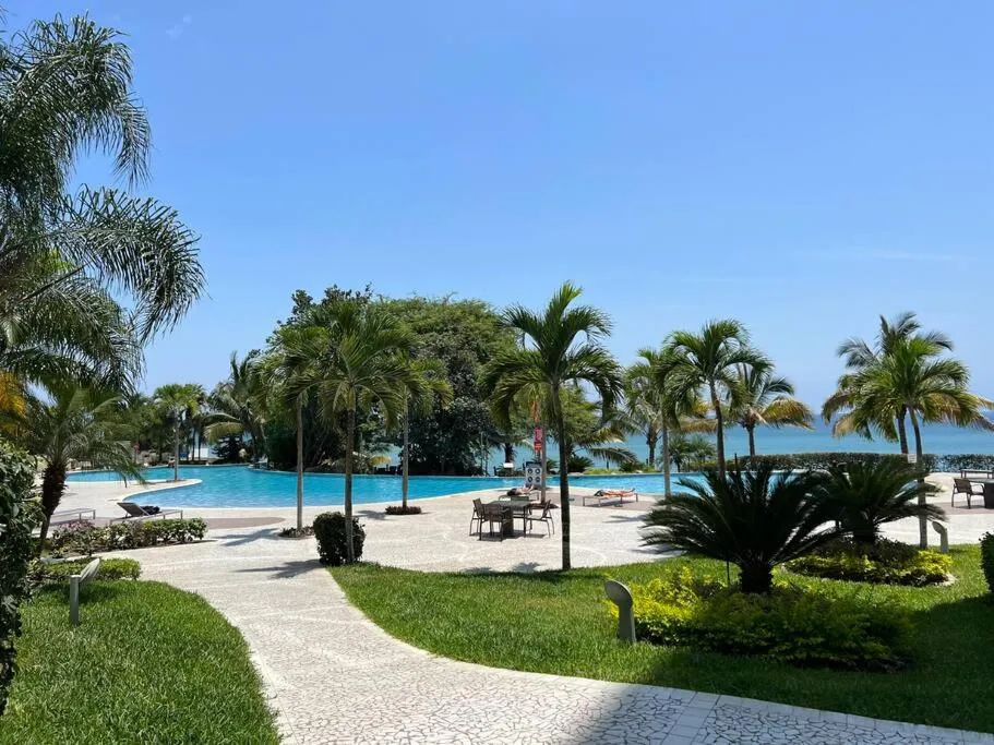 Departamento Suite frente al mar Poseidon Manta се намира в Манта и предлага вътрешен двор с изглед към басейна и градината, както и целогодишен открит басейн, хидромасажна вана и СПА съоръжения.