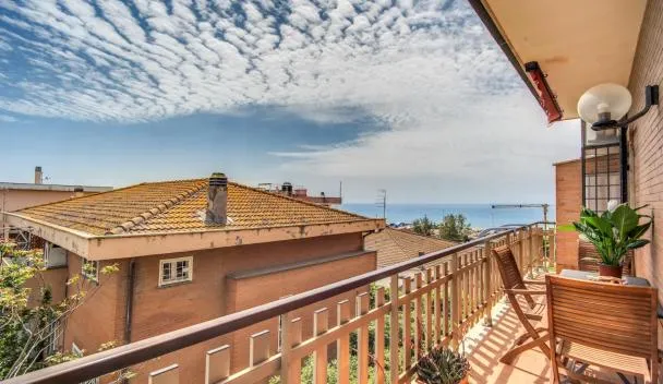 Casa Maurella - Sea View Apartment Ladispoli ligger i Ladispoli med havudsigt. Her er en sæsonåben udendørs swimmingpool, en terrasse og en tennisbane. Der er også gratis wi-fi.