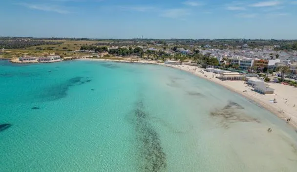 In front of a pedestrian crossing leading to its private beach, Porto Cesareo's Conchiglia Azzurra Resort & Beach features a bar with veranda on the beach, and a modern spa with sauna and hot tub.