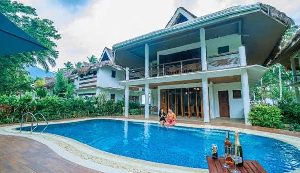 Menampilkan pemandangan Laut Filipina Barat dan sebuah kolam renang outdoor, Daluyon Beach and Mountain Resort terletak di Pantai Sabang di Pulau Palawan.