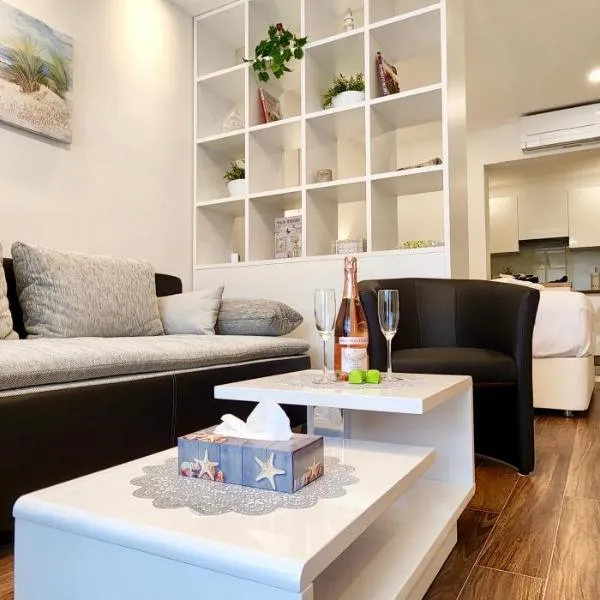Bonita HouseBoat Apartment Portorose se nachází v Portoroži a poskytuje kola zdarma, zahradu, bar a ubytování s bezplatným Wi-Fi a výhledem na moře. Tento apartmán s klimatizací nabízí balkon.