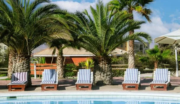 El Hotel Boutique, de gestión privada, alberga una terraza con vistas al mar en Bahía Inglesa.