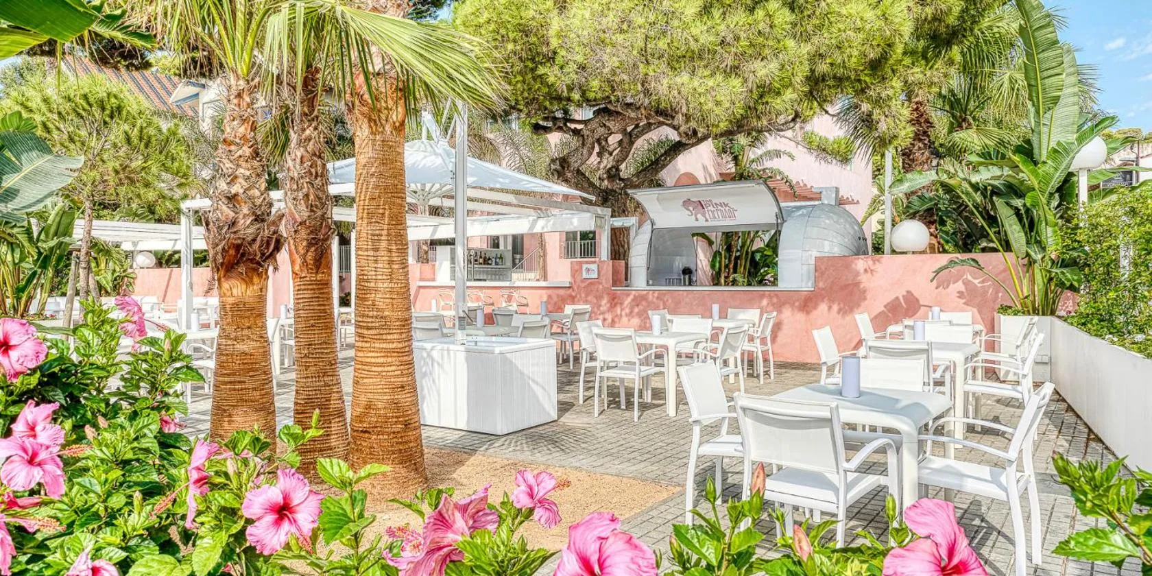 The Pink Elephant Hotel se află pe malul mării în S'Agaro și oferă cazare de 3 stele, o piscină în aer liber, o grădină și un lounge comun.