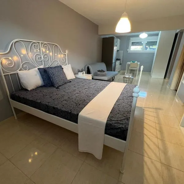 Lora Family Apartment 位於尼基季,提供 WiFi(免費),且住宿可享市景,設有露台。這間住宿距離尼基提海灘(Nikiti Beach) 1.1 公里,設有花園和免費私人停車位。 這間空調公寓有 2 間臥室、起居室,廚房設備齊全且附冰箱和咖啡機,以及 1 間附淋浴設施和免費盥洗用品的衛浴。這間公寓提供毛巾和寢具。 塞薩洛尼基機場距離住宿 84 公里。