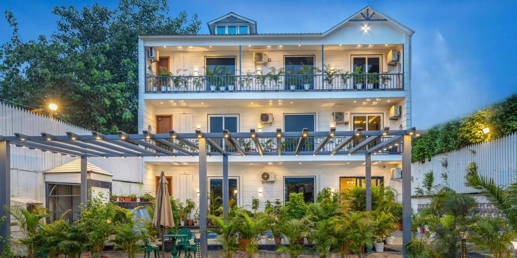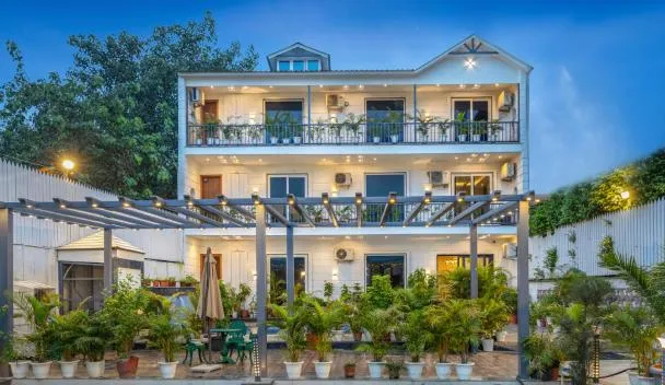 StayVista at Albatross Haven with BBQ & Bonfire mette a disposizione un alloggio con giardino, sala comune e terrazza a Noida e dispone di WiFi gratuito e vista sul giardino.