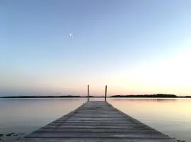 Stellen die naar Åland archipel reisden, genoten van hun verblijf bij Söderö stugby, Kalles, skärgårdsidyll med utsikt över Hamnsundet en Linnearo.
