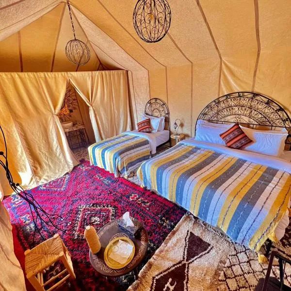 Desert camp sahara luxury features rooms in Merzouga. This luxury tent offers free private parking and a 24-hour front desk. The luxury tent has ski storage space.