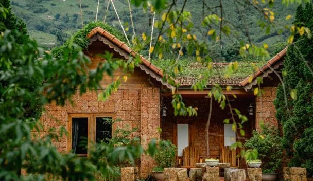 Die Unterkunft Hmong Eco Villas mit Bergblick in Sapa bietet Übernachtungsmöglichkeiten mit einem Garten, einer Terrasse und einem Restaurant.