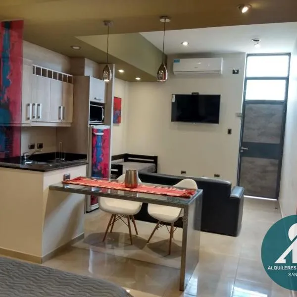 Departamentos Libertador位于圣胡安,提供花园。这家空调住宿距离圣胡安百年纪念体育场有15公里,为客人提供免费WiFi,内部提供私人停车位。 这家公寓配有2间卧室、带卫星频道的平板电视、带冰箱和烤箱的设施齐全的厨房、洗衣机以及1间带坐浴盆的浴室。1间浴室配有淋浴设施,也提供免费洗浴用品,提供毛巾和床上用品。 住宿距离明戈福斯蒂萨米恩托机场有15公里,提供付费机场接驳服务。