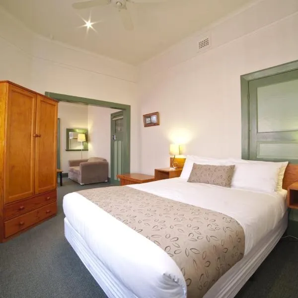 American Hotel Creswick位于克莱斯韦克,距离巴拉拉特火车站有18公里,提供花园、免费私人停车位、共用休息室和露台。这家住宿提供的设施包括客房服务、24小时前台以及免费WiFi。客人可以使用酒吧。 这家酒店的所有客房都提供书桌和平板电视。每间客房都配备电热水壶。部分客房配备带冰箱、烤箱和微波炉的厨房。American Hotel Creswick的客房提供床上用品和毛巾。...