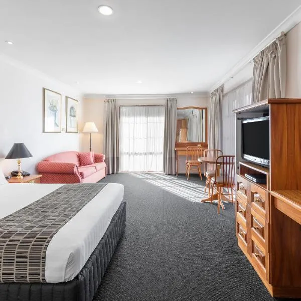 Pavilion Hotel Wagga酒店提供带免费WiFi连接和平板卫星电视的住宿,设有一间咖啡厅和一间酒吧。酒店距离穆伦比基河(Murrumbidgee River)有5分钟车程。 酒吧和休息区是享用轻松鸡尾酒的理想场所。 所有客房均装有空调,配有迷你吧、冰箱和电热水壶。部分客房配有舒适的Spa浴缸。 Pavilion Hotel酒店距离Wagga Railway...