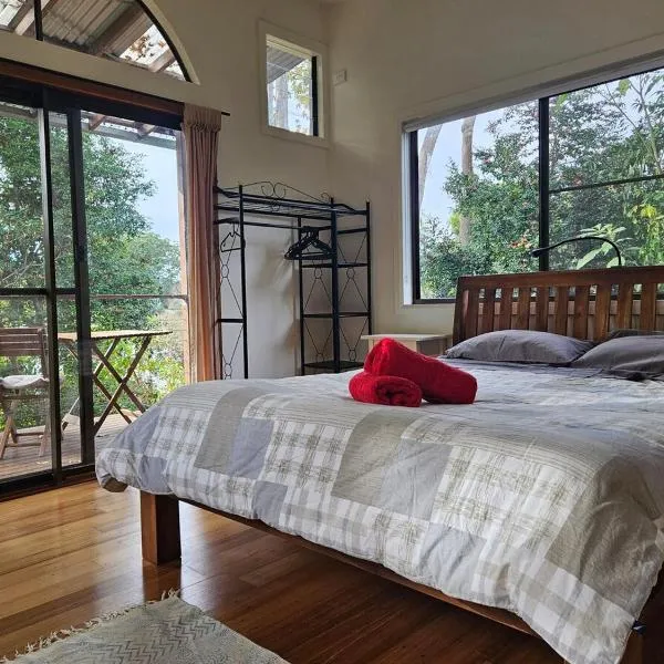 Bellingen Treehouse位于贝林真,距离大香蕉有40公里,距离科夫斯港高尔夫球俱乐部有36公里,提供免费WiFi、花园和空调。这家住宿享有山景,提供阳台。 这家家庭式住宿配有平板电视、带冰箱和微波炉的设施齐全的小厨房以及带浴缸或淋浴设施和吹风机的浴室。这家家庭式住宿提供毛巾和床上用品。