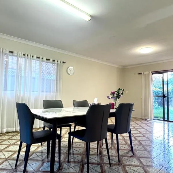 Sunnybank Hills Home - Near Shopping & Dining坐落于布里斯班,距离The Gabba布里斯班板球场有16公里,距离南岸站有16公里,其住宿可通往花园。住宿配备免费WiFi,内部提供私人停车位。 房间提供设施齐全的厨房,内设用餐区、冰箱、电热水壶和微波炉。 这家家庭式住宿距离南岸公园有17公里,距离南布里斯班站有17公里。