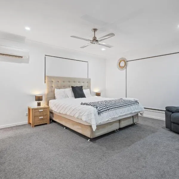 Granadilla st超大间2张床走路到公交站商场G2位于布里斯班,提供免费WiFi、空调、花园和露台,距离The Gabba布里斯班板球场有12公里,距离南岸站有13公里。这家住宿享有市景,配备阳台。 厨房配备冰箱、洗碗机和烤箱。住宿提供淋浴设施、免费洗浴用品和吹风机。 这家家庭式住宿距离南岸公园有13公里,距离南布里斯班站有13公里。布里斯班机场距离住宿有21公里。