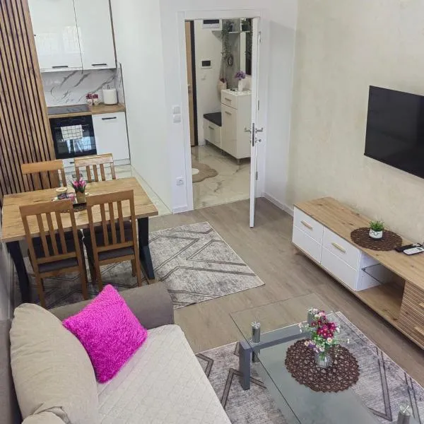 Apartman Sunshine位于多博伊,提供空调客房、阳台和免费WiFi。 这家公寓提供露台,享有市景,配有1间卧室、起居室、平板电视、带冰箱和炉灶的设施齐全的厨房以及1间带淋浴设施的浴室。1间浴室提供免费洗浴用品。 这家公寓配备儿童游乐场和共用休息室。 图兹拉国际机场距离住宿有71公里。