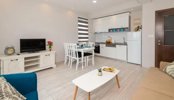 Goldy享有市景,配备阳台,距离斯通墙约有23公里。这家住宿距离纽姆小海滩(Neum Small Beach)有18分钟步行路程,提供露台和免费私人停车位。 这家空调公寓配有1间卧室、起居室、带洗碗机和电热水壶的设施齐全的厨房以及1间带淋浴设施和吹风机的浴室。这家公寓也拥有休息区和1间浴室。 这家公寓距离克拉维克瀑布有38公里,距离Trsteno Arboretum有48公里。