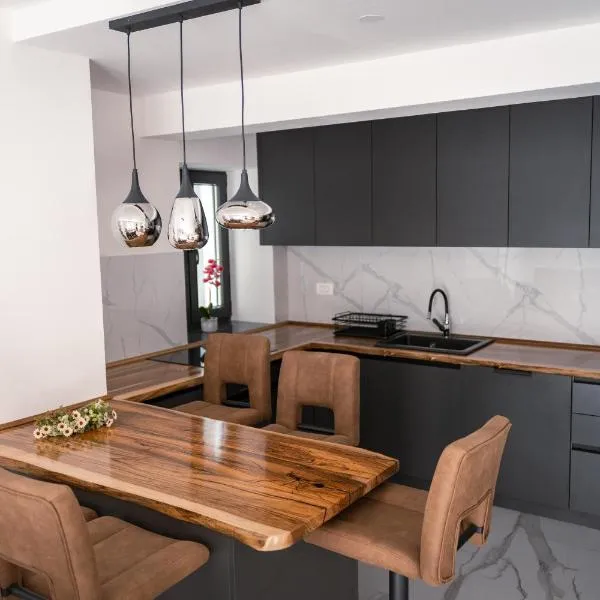 Sašina kuća位于利夫诺,配备带免费WiFi的山景客房,配备露台。这家自助式度假屋配有花园和免费私人停车位。 这家空调度假屋配有2间卧室、起居室、带冰箱和电热水壶的设施齐全的厨房以及1间带淋浴设施和吹风机的浴室。这家度假屋还提供平板电视以及1间带拖鞋的浴室。
