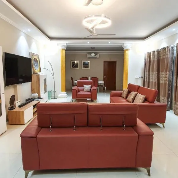Résidence MAR坐落于瓦加杜古,提供免费WiFi和平板电视等设施,距离布基纳法索国家博物馆有7.3公里,距离国家音乐博物馆有7.5公里。这家住宿距离瓦加杜古市政体育场有5.8公里,配备露台和免费私人停车位。 这家空调公寓配有1间独立卧室、起居室、设施齐全的厨房以及3间浴室。这家公寓也拥有3间浴室。 这家公寓距离八月四日体育场有9.1公里。瓦加杜古机场距离住宿有3公里。