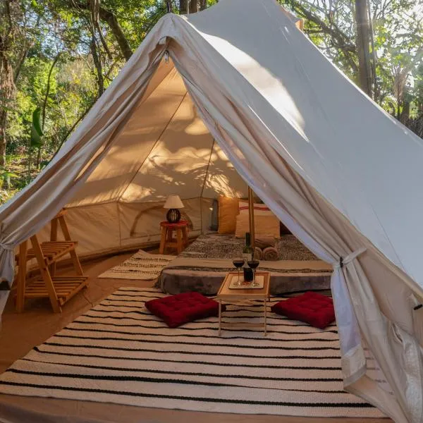 Cabana Villa CajuはPraia dos Algodõesにある宿泊施設で、イタカレ・バスステーションまで43km、Wharfまで44kmです。プライア・デ・アルゴドイスから2.4kmの場所にあるエアコン付きの宿泊施設で、無料WiFiと敷地内の専用駐車場を提供しています。 このラグジュアリーテントにはタオルとベッドリネンを用意しています。 バーハ・グランデ空港まで20kmです。