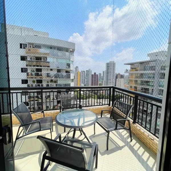 Suíte em Belém, Pará com sacada e vista panorâmica da cidade坐落于贝伦,距离拿撒勒圣母圣殿仅有14分钟步行路程,提供健身中心、共用休息室和共用厨房。这家公寓配备免费私人停车位和24小时前台。 这家公寓提供阳台,享有市景,拥有2间卧室、起居室、平板电视、带冰箱和烤箱的设施齐全的厨房以及4间带浴缸或淋浴设施的浴室。4间浴室提供免费洗浴用品。