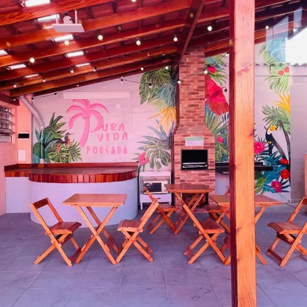Pousada Praia Cia, Piscina, Centro, Estacionamento, WIFI, Saída até as 15h坐落于伯迪亚哥,距离恩塞达海滩(Enseada Beach)有7分钟步行路程,配备户外游泳池、免费私人停车位和露台。这家宾馆提供免费WiFi,距离勒斯汀加德贝尔蒂奥加州立公园约有9公里,距离瓜鲁雅巴士站有36公里。