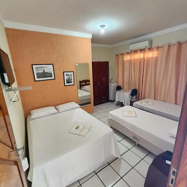 Pousada Terra do Sol位于凯科。这家住宿提供的设施包括客房服务、24小时前台以及免费WiFi。宾馆配有家庭间。 这家宾馆的所有客房都配备书桌。Pousada Terra do Sol的客房均提供平板电视、空调以及配有淋浴设施的私人浴室。部分客房提供阳台。这家住宿的每间客房都提供床上用品和毛巾。 布里加德罗·菲尔米诺·艾尔斯机场(Brigadeiro Firmino...