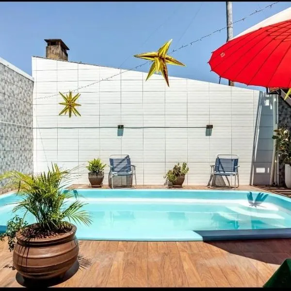 Perto Aeroporto Salgado Filho e Arena do Grêmio位于阿雷格里港,配备带免费WiFi的池景客房,配有季节性室外泳池、健身中心和花园。内部提供私人停车位。 小厨房配有冰箱、烤箱和微波炉。 这家家庭式住宿的前台可提供信息,以帮助客人游览该地区。 住宿配备带桌球的游戏室。