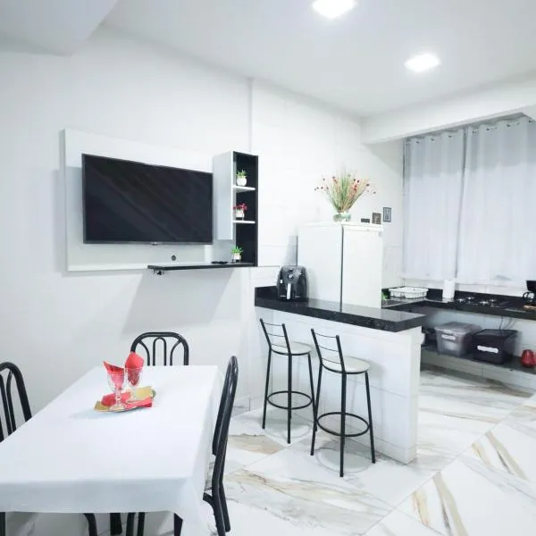 Hotel Plaza Inn Flat Residence坐落于阿尔费纳斯,配备烧烤设施。这家经济型酒店提供免费WiFi、户外游泳池和共用休息室。住宿为客人配备客房服务和24小时前台。 部分客房还配备带迷你吧和炉灶的厨房。 这家酒店供应美式早餐。 Hotel Plaza Inn Flat Residence提供阳光露台。 瓦尔吉尼亚机场距离住宿有65公里。