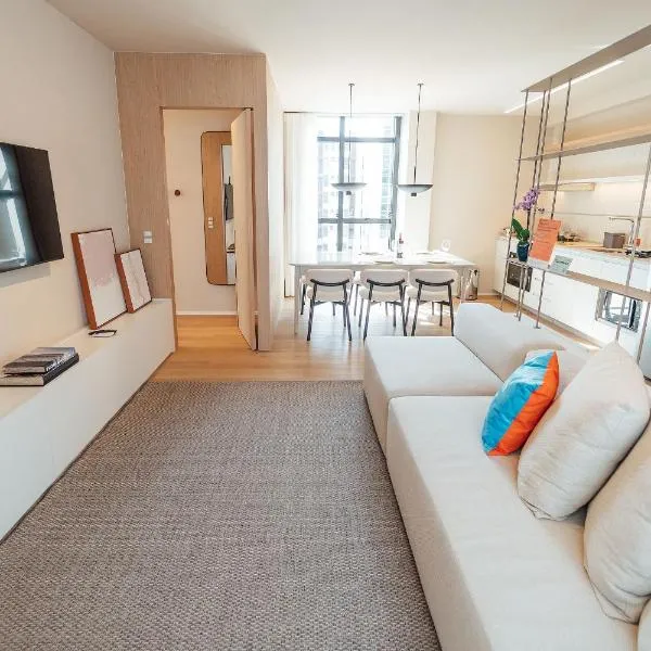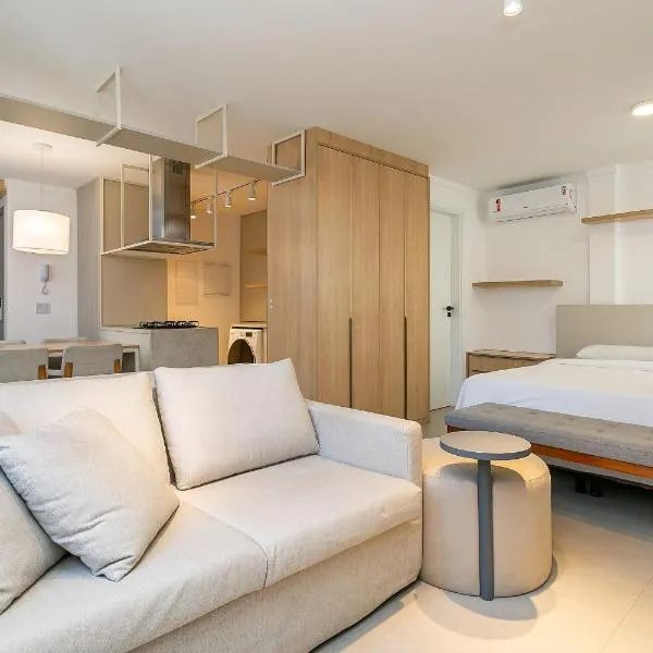 Apartamentos Modernos a 900 m da Beira-mar Norte - EOX está ubicado a 400 metros del centro de Florianópolis y tiene alojamiento con wifi gratis y cocina con una heladera, un horno y un microondas.