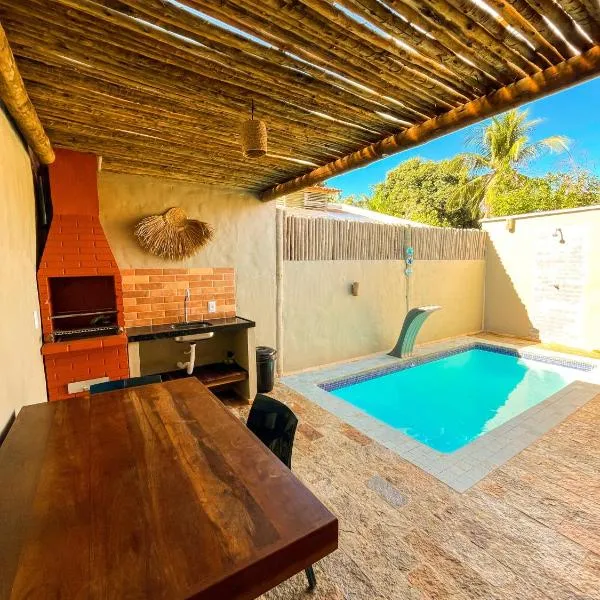 Casa de veraneio se nachází v destinaci Fortim a nabízí venkovní bazén, zahradu, sdílený lounge a ubytování s bezplatným Wi-Fi a výhledem do zahrady.