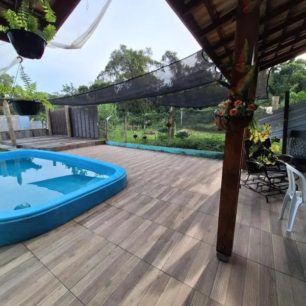 Cabana Monte Trigo com Banheira位于南圣弗朗西斯科,提供季节性室外泳池、花园和烧烤设施,距离Joinville Arena有48公里,距离Ernestão Stadium有48公里,距离Boa Vista Hill有50公里。这家度假屋配备免费私人停车位、共用厨房和免费WiFi。