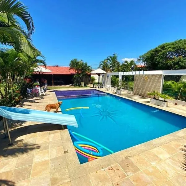 Casa de temporada piscina com proxima a praia features a balcony and is located in Saquarema, within just 1.3 km of Barra Nova Beach and less than 1 km of Ducks' Pond.