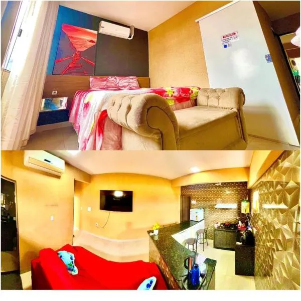 Home flat坐落于Tocantins的阿拉瓜伊纳,拥有阳台。内部提供私人停车位。 这家空调1卧室公寓提供1间浴室,配备淋浴设施。这家公寓配备露台,也配有平板电视、厨房和1间浴室。 阿拉瓜伊纳机场距离住宿有11公里。
