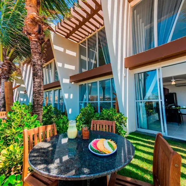 Aldeias Guajiru Apart提供私人海滩区以及带阳台和免费WiFi的空调住宿,距离瓜伊赫鲁海滩(Guajiru Beach)有8分钟步行路程。内部提供私人停车位。 住宿还提供设施齐全的小厨房和私人浴室。