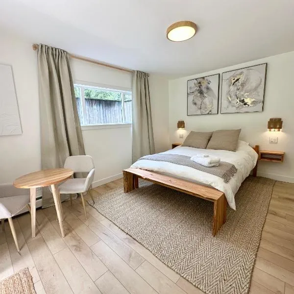 Posada Nordica - a chic, tranquil mountainview suite位于霍普,提供带庭院和免费WiFi的自助式住宿。这家自助式公寓配有花园和免费私人停车位。 这家空调公寓配有1间卧室以及1间带淋浴设施和吹风机的浴室。这家公寓提供山景露台,也为客人提供小厨房和1间浴室。 阿伯兹福德机场距离住宿有85公里。
